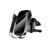 “Smart vehicle bracket wireless charger、 Infrared induction, automatic locking、 Smart recognition, wireless quick charging、 Silica gel anti-slip mat, Stable clamping、 Operated with one hand.”